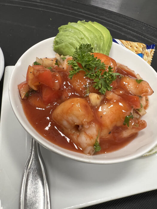 Veracruz style shrimp cocktail spiced with our signature homemade mix, fresh cilantro, onions, and avocado.